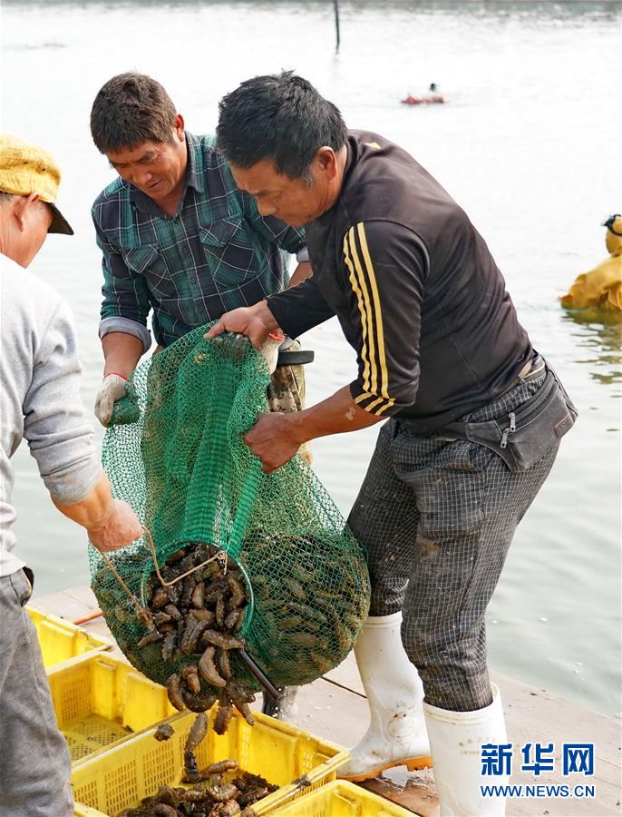 10月30日,樂亭縣姜各莊鎮(zhèn)一處海參養(yǎng)殖基地的工人將捕撈的海參從漁具中倒出。 新華社記者楊世堯攝