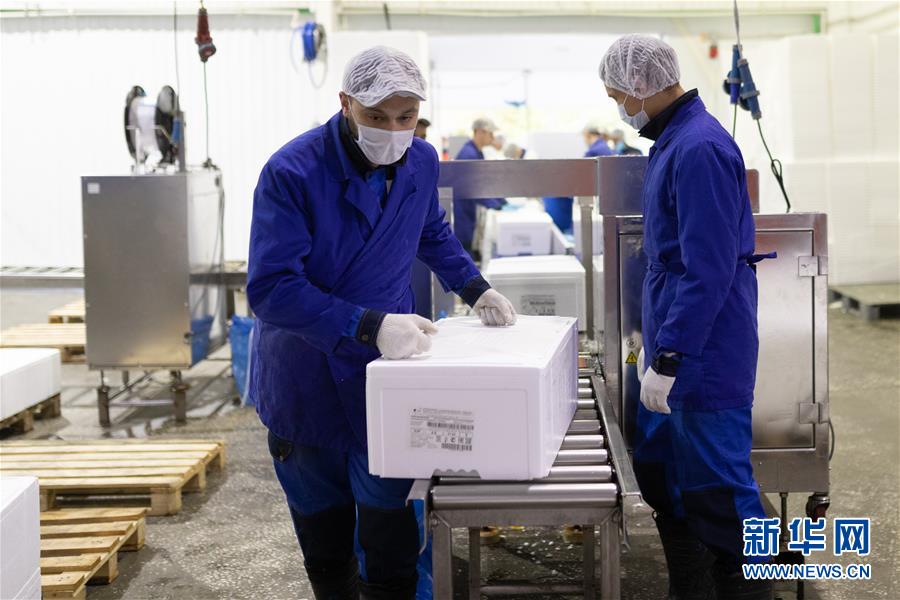 9月13日,在俄羅斯摩爾曼斯克,俄羅斯水產養(yǎng)殖公司工作人員搬運已裝箱的鮭魚。 俄羅斯水產養(yǎng)殖公司是俄羅斯大西洋鮭和虹鱒的主要生產商之一。目前,該公司產品在俄市場上占比近20%,在摩爾曼斯克和卡累利阿共和國均有養(yǎng)殖場。俄羅斯水產養(yǎng)殖公司總經(jīng)理伊利亞·索斯諾夫認為,中國鮭魚消費市場潛力巨大?!爸袊袌鰧τ谖覀儊碚f非常重要,我們期待早日進入中國市場……希望我們的鮭魚能贏得中國消費者的喜愛?!?新華社記者白雪騏攝