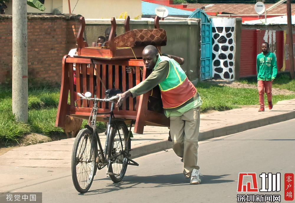 實(shí)拍靠自行車賺錢的剛果生意人,貨物堆積如山,畫面驚險