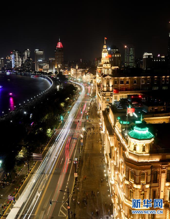 上海外灘燈光璀璨(9月30日攝)。新華社記者丁汀攝
