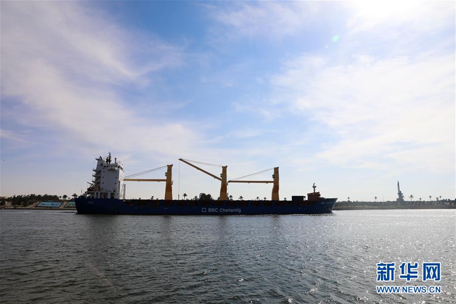 11月17日,在埃及伊斯梅利亞,一艘貨輪從蘇伊士運(yùn)河上駛過(guò)。埃及蘇伊士運(yùn)河管理局17日在埃及東北部伊斯梅利亞省舉行儀式,慶祝蘇伊士運(yùn)河通航150周年。新華社記者李碧念攝