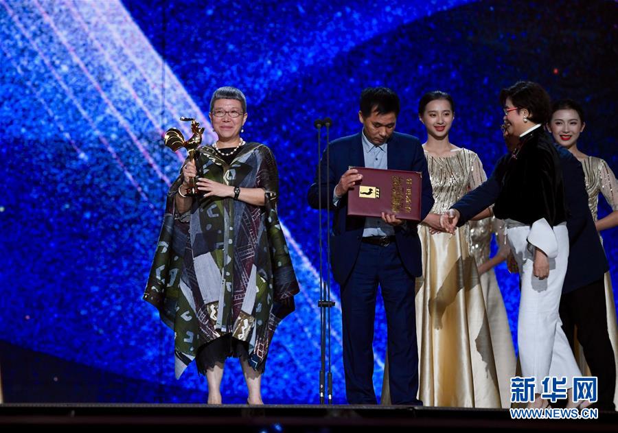 11月23日,電影《送我上青云》演員吳玉芳獲得最佳女配角獎(jiǎng)。當(dāng)日,第32屆中國(guó)電影金雞獎(jiǎng)?lì)C獎(jiǎng)典禮在福建廈門舉行。新華社記者姜克紅攝