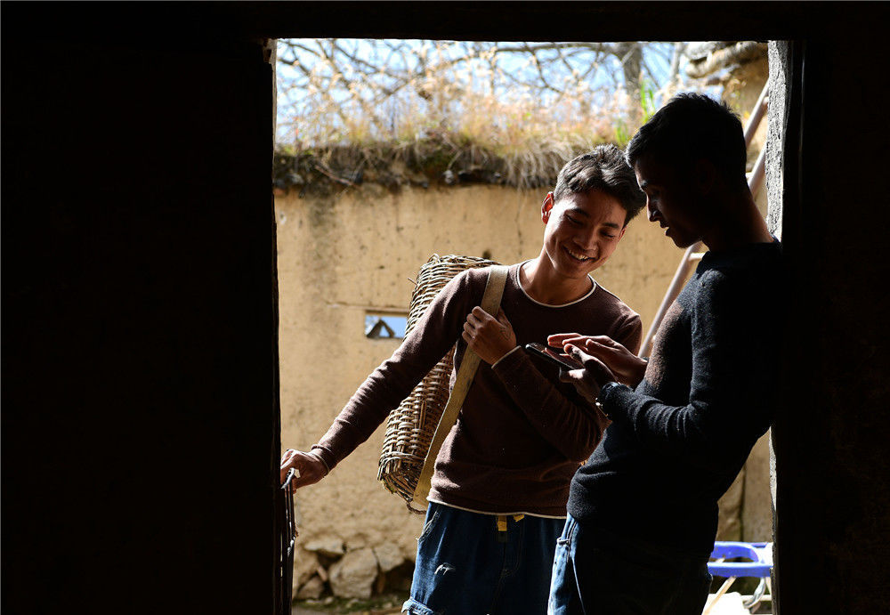 2019年11月16日,四川涼山,村里的年輕人一起交流購物經(jīng)驗(yàn)。