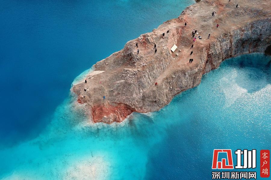 藍(lán)色的湖體和礦坑的巖石相襯下酷似“馬爾代夫”旅游景點(diǎn),成為“網(wǎng)紅”,一時(shí)間吸引了眾多游客前來(lái)觀光打卡。