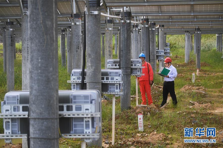 9月26日,工作人員在巡檢湖州市埭溪鎮(zhèn)東紅村的光伏發(fā)電站。新華社記者徐昱攝