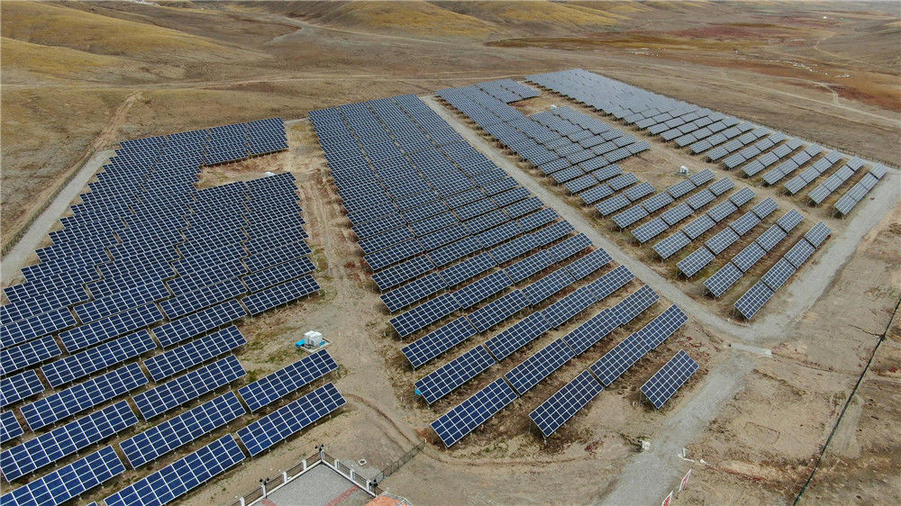 2019年10月10日,位于青海省果洛藏族自治州瑪多縣境內(nèi)的中國海拔最高村級光伏扶貧電站。