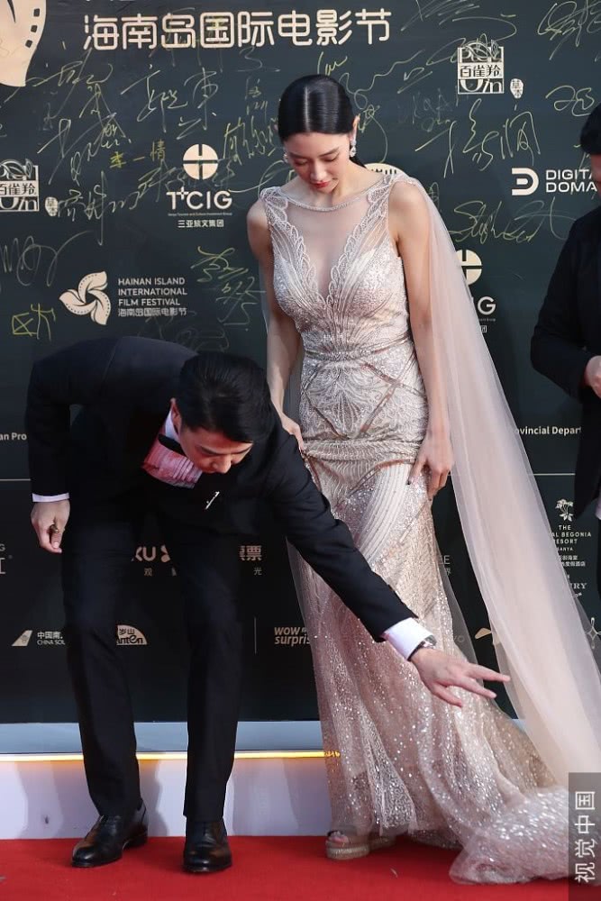 任達(dá)華為李若彤整理裙擺。