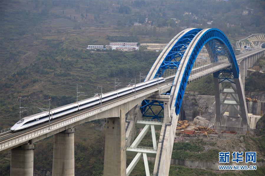 12月2日,一輛試驗(yàn)列車(chē)駛過(guò)成貴高鐵鴨池河特大橋。當(dāng)日,正在進(jìn)行聯(lián)調(diào)聯(lián)試的成貴高鐵進(jìn)入全線拉通空載模擬運(yùn)行階段,試驗(yàn)列車(chē)將在成都到貴陽(yáng)區(qū)間內(nèi)全線路運(yùn)行。線路全長(zhǎng)650公里的成貴高鐵是我國(guó)“八縱八橫”高速鐵路網(wǎng)的重要組成部分,設(shè)計(jì)時(shí)速為250公里。新華社記者劉續(xù)攝
