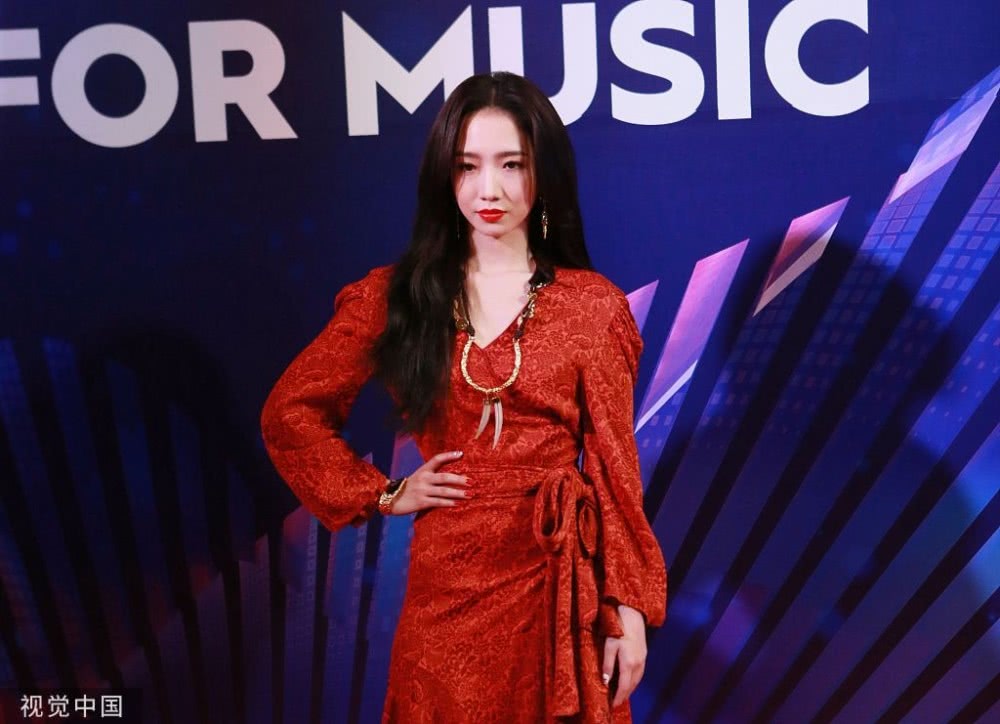 孟美岐身穿大紅色長裙搭配波浪卷發(fā),大走港風(fēng)美艷動人。
