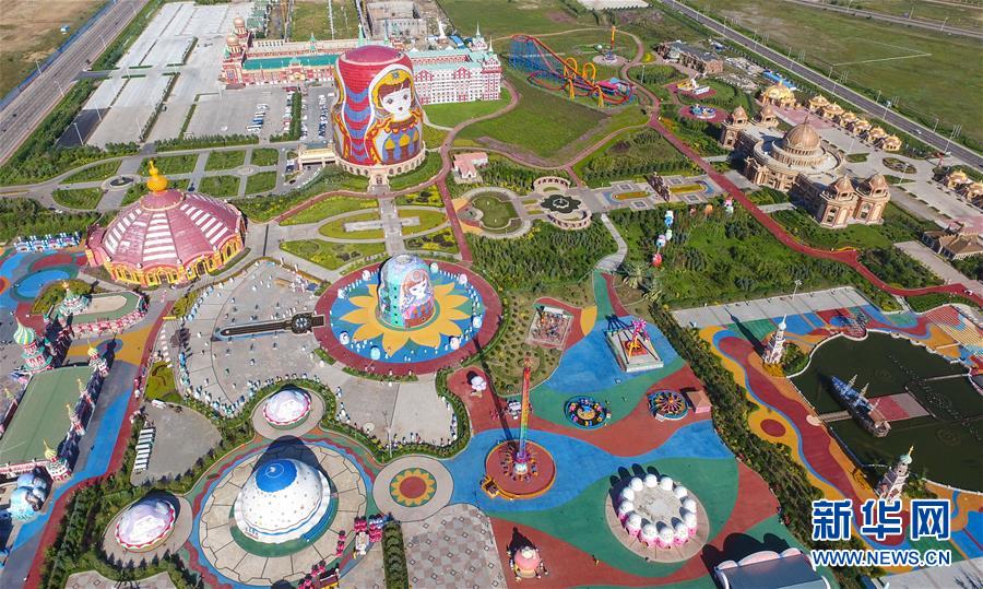 8月29日無(wú)人機(jī)拍攝的滿(mǎn)洲里市套娃廣場(chǎng)景區(qū)。滿(mǎn)洲里市位于呼倫貝爾大草原腹地。新華社記者沈伯韓攝