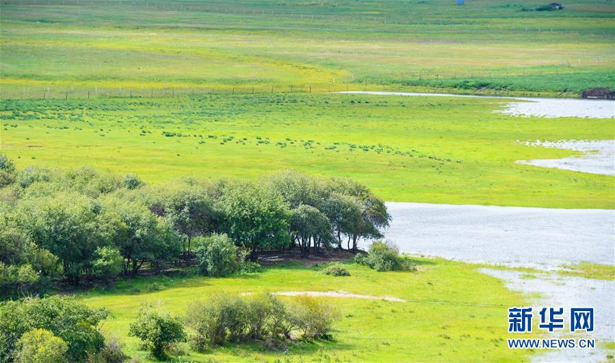 8月27日無(wú)人機(jī)拍攝的呼倫貝爾草原呼和諾爾湖。新華社記者任軍川攝