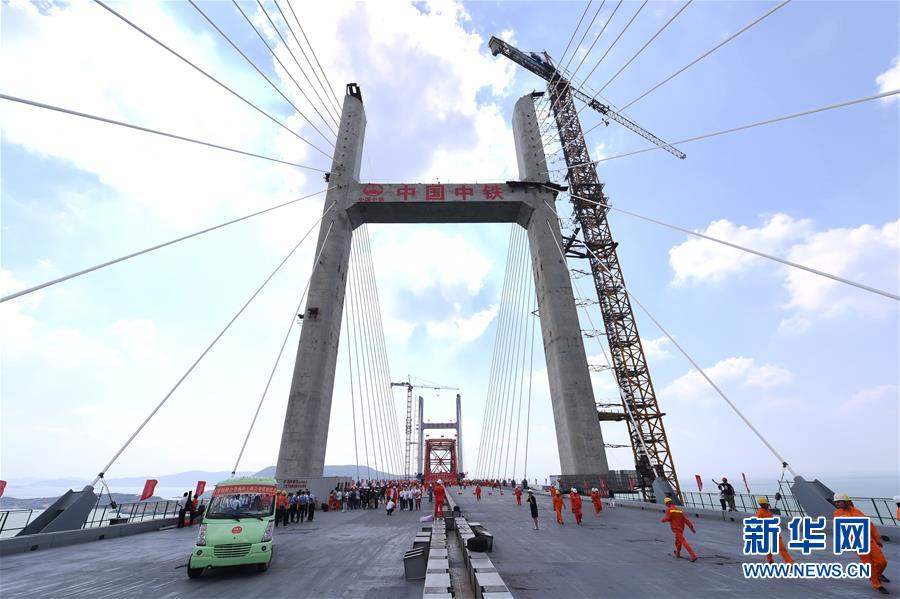 9月25日拍攝的平潭海峽公鐵大橋合龍貫通慶祝活動現(xiàn)場。新華社記者林善傳攝