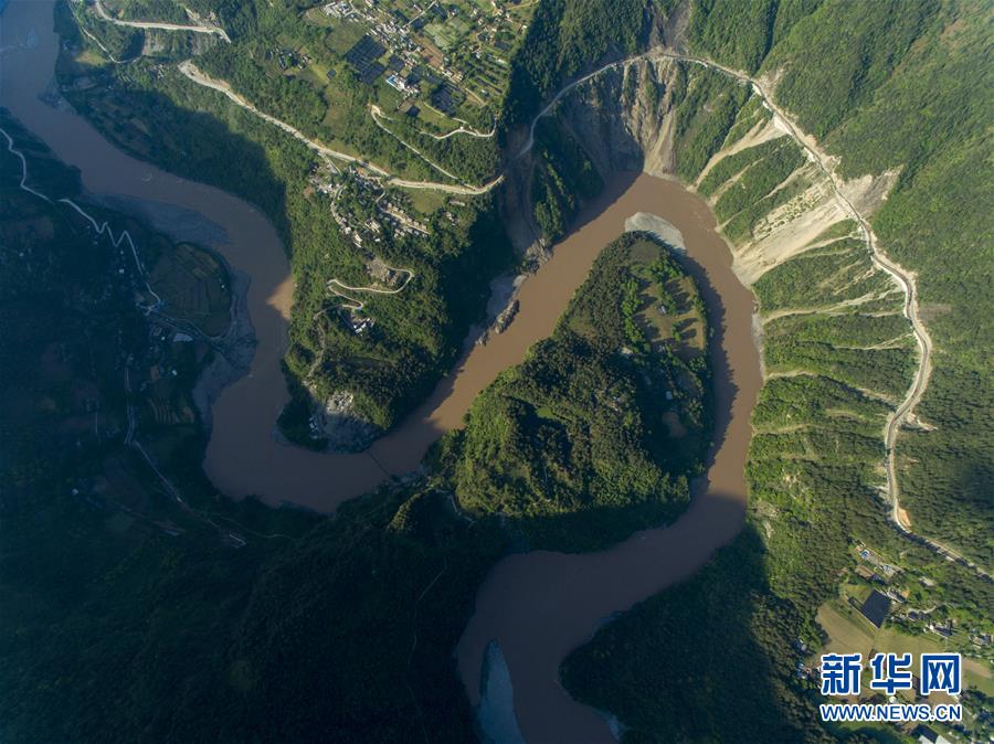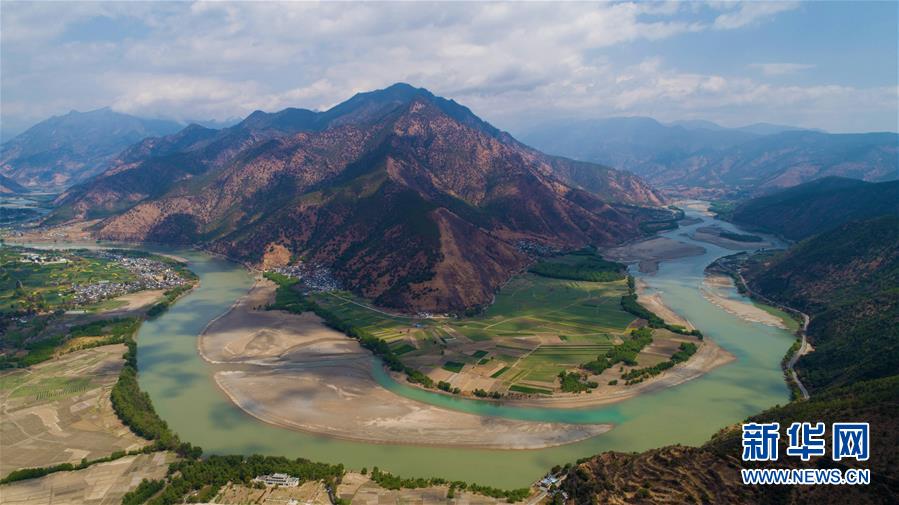 這是無人機(jī)拍攝的“長江第一灣”(3月17日攝)?!伴L江第一灣”位于云南省麗江市玉龍納西族自治縣石鼓鎮(zhèn),萬里長江從青藏高原奔騰而下,與瀾滄江、怒江一起在橫斷山脈的高山深谷中穿行形成并流的壯麗景觀。金沙江在麗江石鼓鎮(zhèn)突然以急轉(zhuǎn)彎轉(zhuǎn)向東北,形成一個(gè)宛若“V”字形的大轉(zhuǎn)彎,得名“長江第一灣”。春日里,“長江第一灣”江水青碧,美景迷人。新華社記者胡超攝