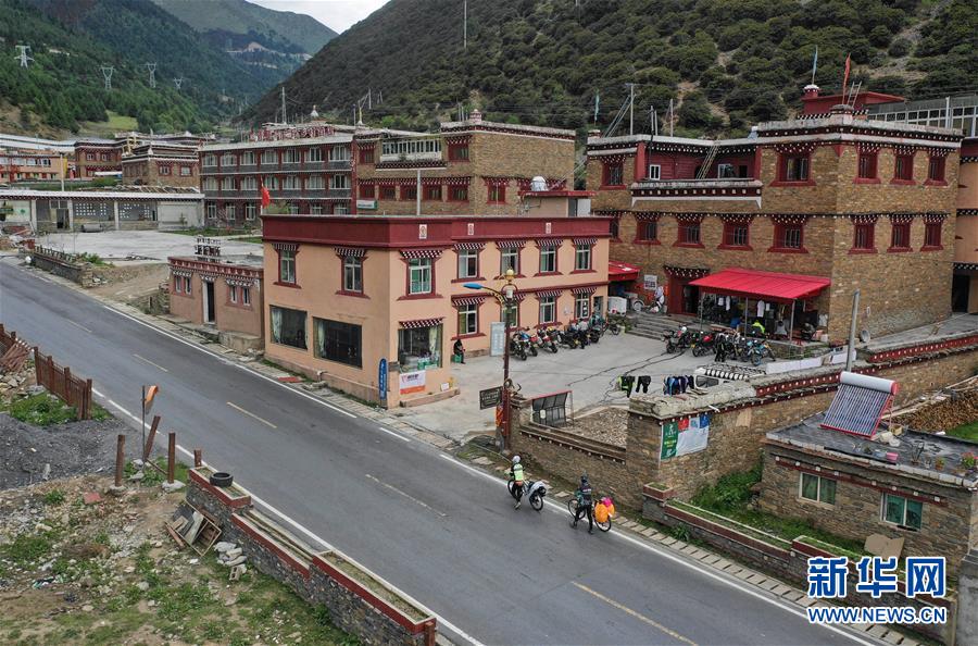 在川藏公路沿線的雅江縣剪子彎山下相格宗村,騎行在川藏線上的游客來(lái)到布珠民居客棧里住宿用餐(6月26日攝)。新華社記者江宏景攝