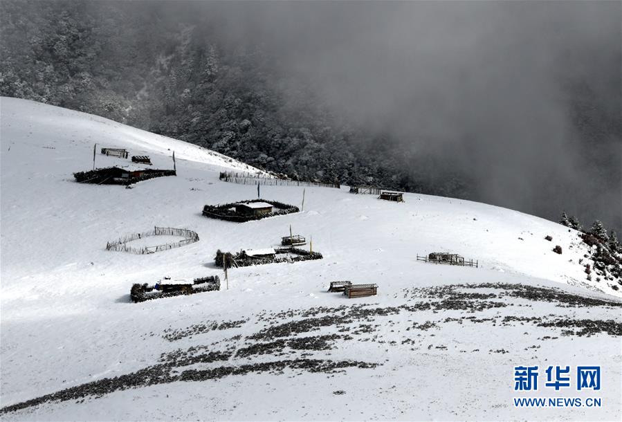 這是318國(guó)道剪子彎山段,大雪過(guò)后銀裝素裹(10月17日無(wú)人機(jī)拍攝)。新華社記者江宏景攝