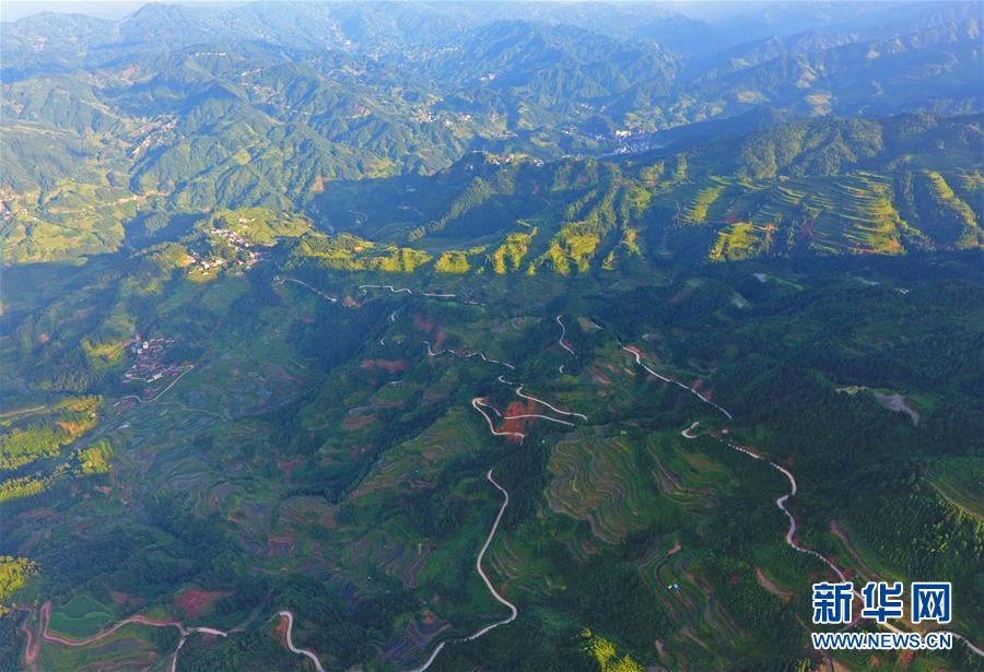 這是融水苗族自治縣桿洞鄉(xiāng)百秀村的村屯公路(6月19日無人機拍攝)。新華社記者黃孝邦攝