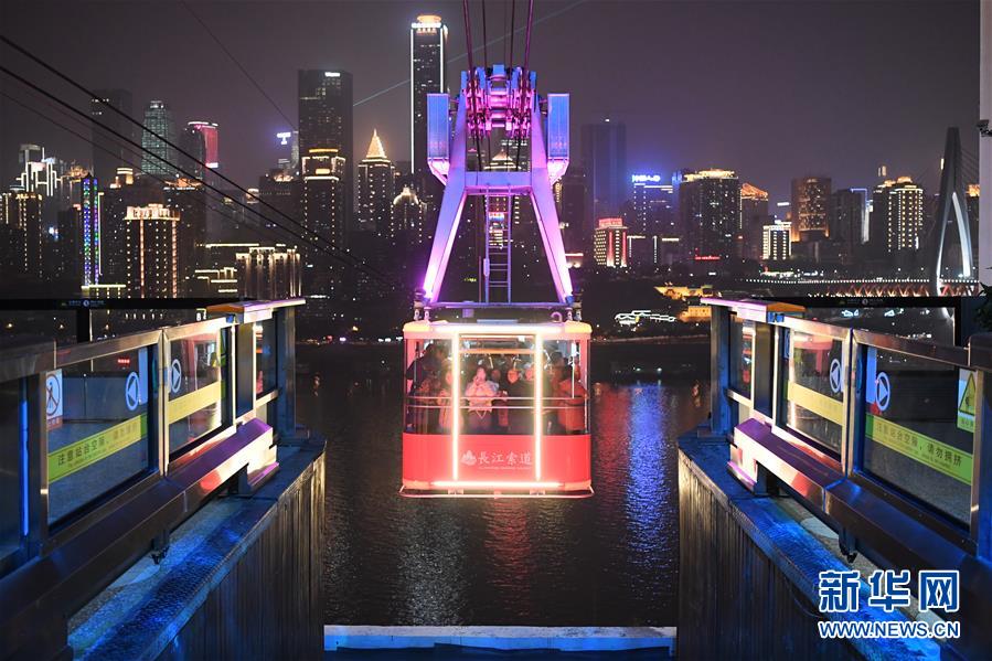 12月23日,“長江索道”在重慶夜空中運(yùn)行。新華社記者唐奕攝