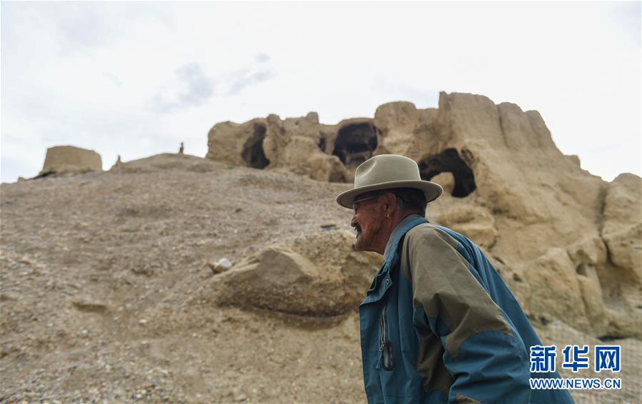達瓦次仁和他曾經居住的、位于古格遺址前的家(7月30日攝)。新華社記者晉美多吉攝