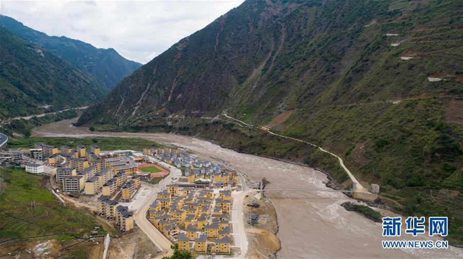 建于怒江邊的大興地鎮(zhèn)維拉壩“珠海小區(qū)”已初現(xiàn)規(guī)模(6月24日無人機拍攝)。新華社記者胡超攝