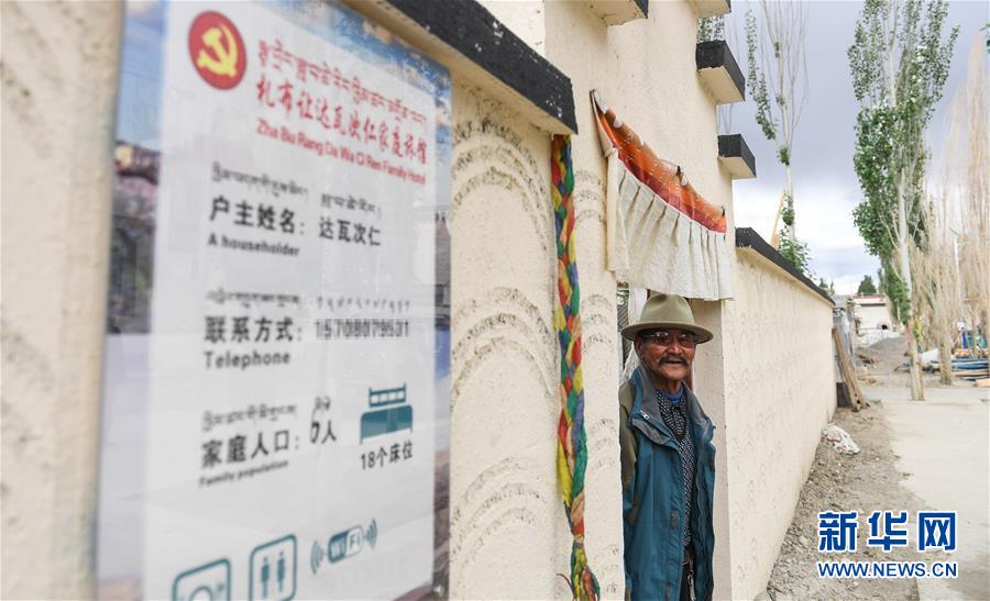 76歲的達瓦次仁在位于西藏阿里地區(qū)札達縣托林鎮(zhèn)札布讓村的家門口(7月30日攝)。新華社記者晉美多吉攝