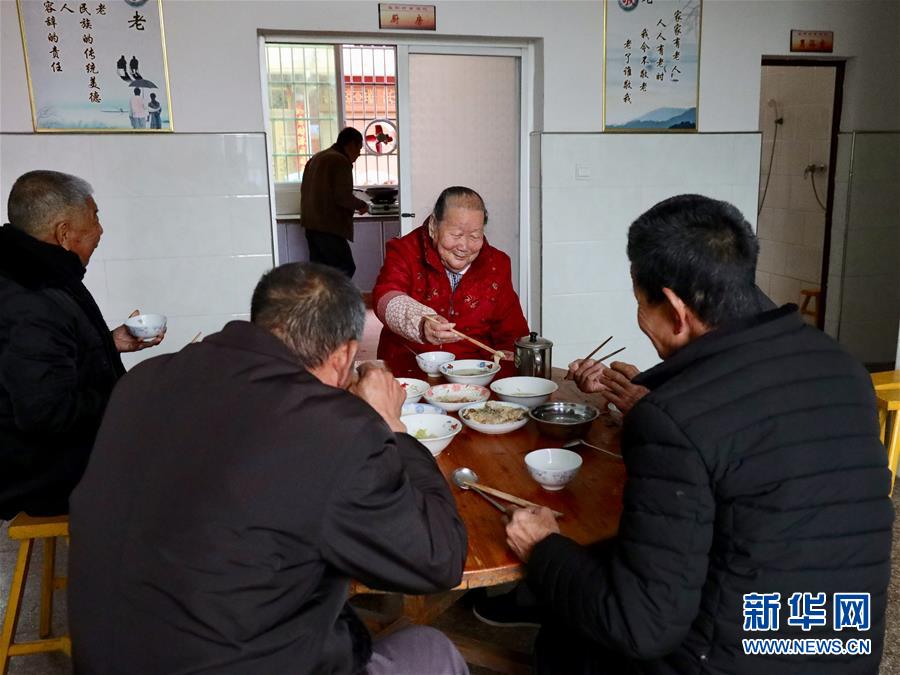 在寧德福安市溪邳村幸福院,老人在用餐(3月6日攝)。新華社記者姜克紅攝