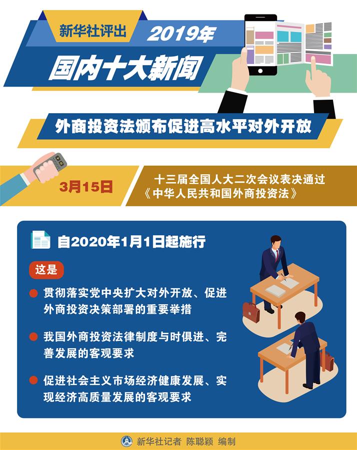 3月15日,十三屆全國人大二次會議表決通過《中華人民共和國外商投資法》,自2020年1月1日起施行。這是貫徹落實黨中央擴大對外開放、促進外商投資決策部署的重要舉措,是我國外商投資法律制度與時俱進、完善發(fā)展的客觀要求,是促進社會主義市場經(jīng)濟健康發(fā)展、實現(xiàn)經(jīng)濟高質(zhì)量發(fā)展的客觀要求。