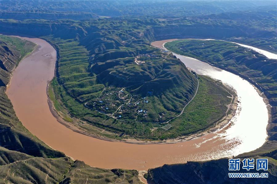 這是8月28日拍攝的山西省永和縣閣底鄉(xiāng)境內(nèi)黃河乾坤灣(無人機照片)。 新華社記者 曹陽 攝