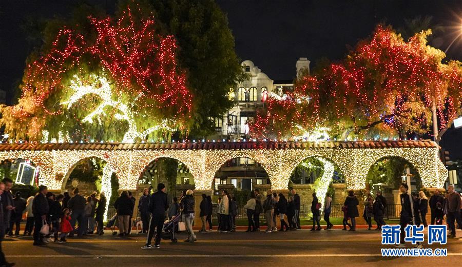 12月29日,人們在美國加利福尼亞州里弗賽德燈光節(jié)上欣賞彩燈。第27屆里弗賽德燈光節(jié)流光璀璨,洋溢著濃厚的新年氣氛,吸引眾多游客前來觀看。 新華社記者李穎攝