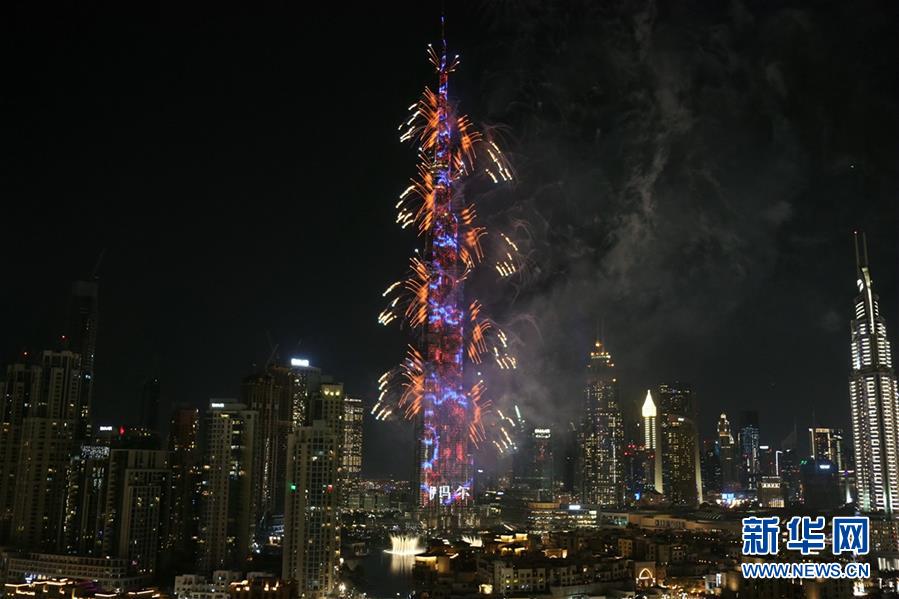 這是2020年1月1日拍攝的阿聯(lián)酋迪拜哈利法塔跨年煙火表演。新華社記者蘇小坡攝