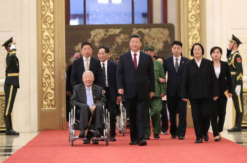 2019年9月29日,中華人民共和國國家勛章和國家榮譽(yù)稱號頒授儀式在北京人民大會堂金色大廳隆重舉行。中共中央總書記、國家主席、中央軍委主席習(xí)近平同國家勛章和國家榮譽(yù)稱號獲得者一同步入會場。新華社記者丁海濤攝
