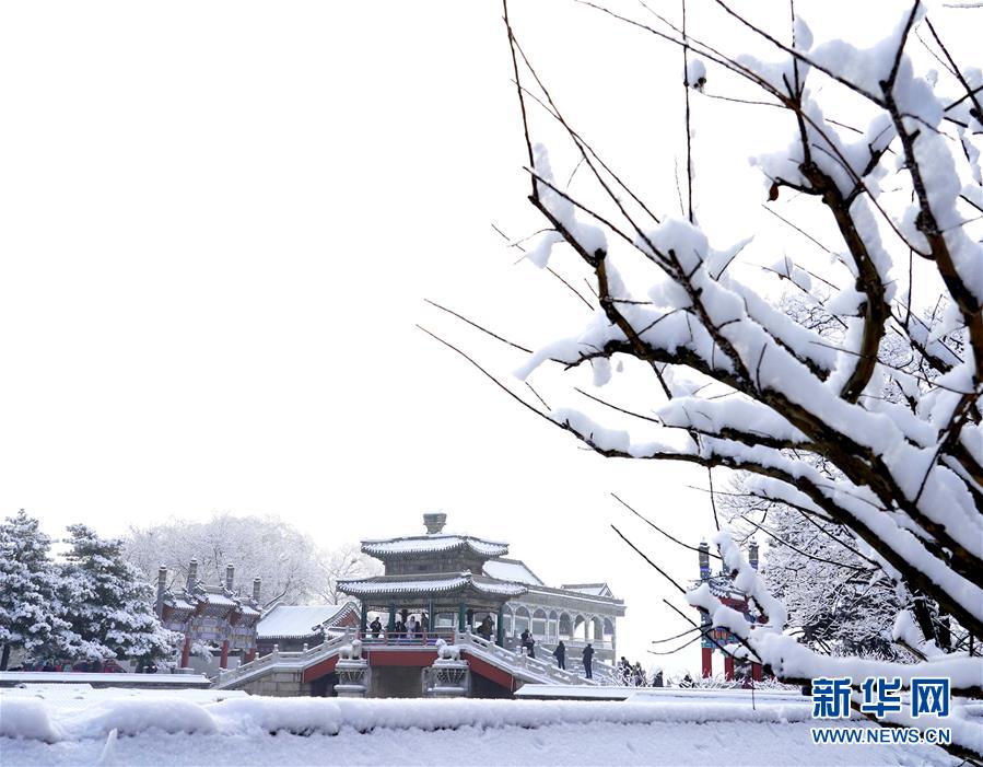12月16日,人們?cè)谔靿珗@觀賞雪景。當(dāng)日,北京迎來(lái)降雪天氣。新華社記者鞠煥宗攝
