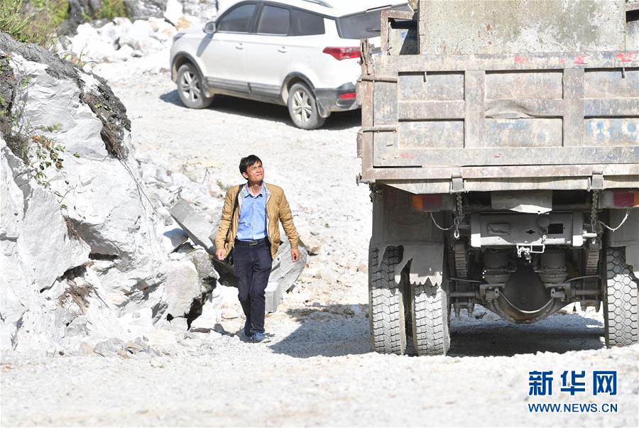 八好村駐村第一書記韋德王徒步前往群眾家走訪,這是他從一輛運(yùn)水車旁經(jīng)過(2019年12月16日攝)。新華社記者黃孝邦攝