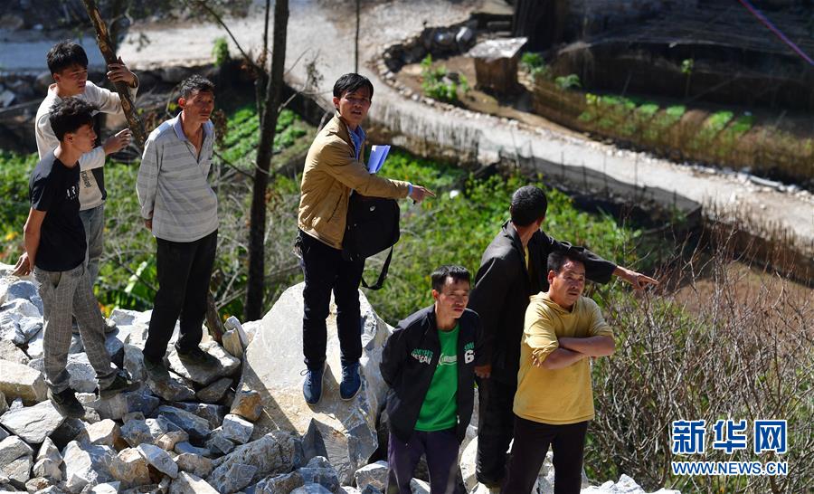 八好村駐村第一書記韋德王(中)在弄豪屯推進水柜項目建設(shè)進度(2019年12月16日攝)。新華社記者黃孝邦攝