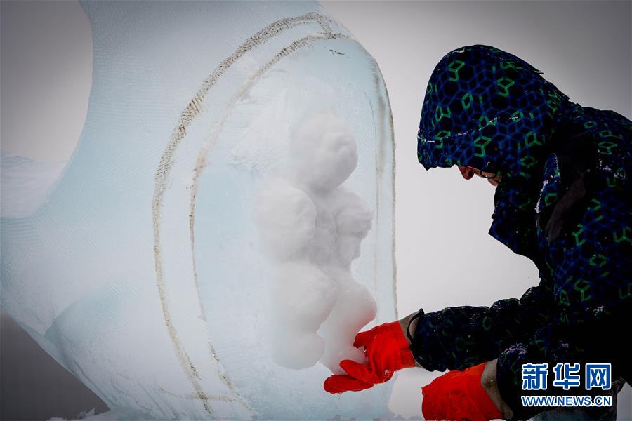 1月6日,參賽者在創(chuàng)作冰雕。新華社記者王松攝
