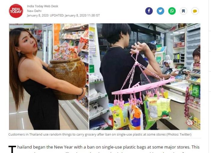 泰國人用各種創(chuàng)新的方式來裝購買的物品。來源:《今日印度》報(bào)道頁面截圖