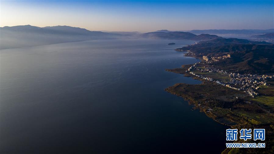 空中俯瞰撫仙湖(無(wú)人機(jī)照片,1月10日攝)。 來(lái)自云南省玉溪市撫仙湖管理局的數(shù)據(jù)顯示,撫仙湖2019年度保持一類(lèi)水質(zhì),總磷、總氮等數(shù)值較2018年有所下降。 新華社記者 江文耀 攝