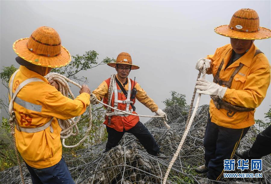 1月14日,百色工務(wù)段白水河橋隧工區(qū)班組工長王勇(右一)和同事在處理危石。在中國鐵路南寧局集團(tuán)公司百色工務(wù)段白水河橋隧工區(qū),有一個由14名工人組成的班組。他們常年像“爬山虎”一樣行走攀爬在地形險峻、云霧繚繞的高山上,負(fù)責(zé)南昆鐵路轄區(qū)路段的搜山掃石工作,清除一切可能危害鐵路行車安全的因素,保障旅客出行安全。新華社記者張愛林?jǐn)z