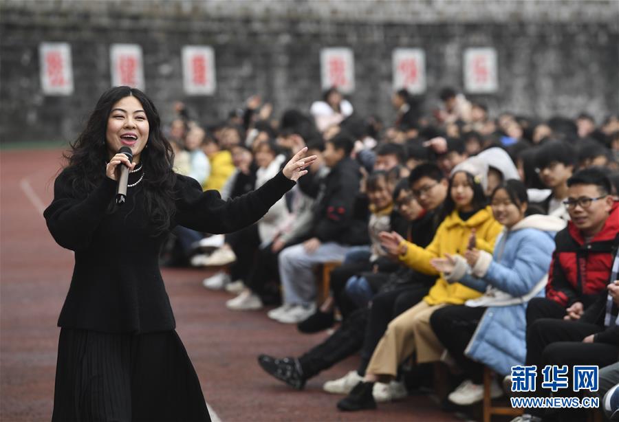 1月15日,中央歌劇院的歌唱家們在慰問演出中演唱。 當(dāng)日,“我們的中國夢”——文化進(jìn)萬家中央歌劇院文藝小分隊來到重慶市石柱土家族自治縣第一職業(yè)學(xué)校進(jìn)行慰問演出,為學(xué)校的三千多名師生帶來了一場精彩的音樂大餐。 新華社記者 王全超 攝