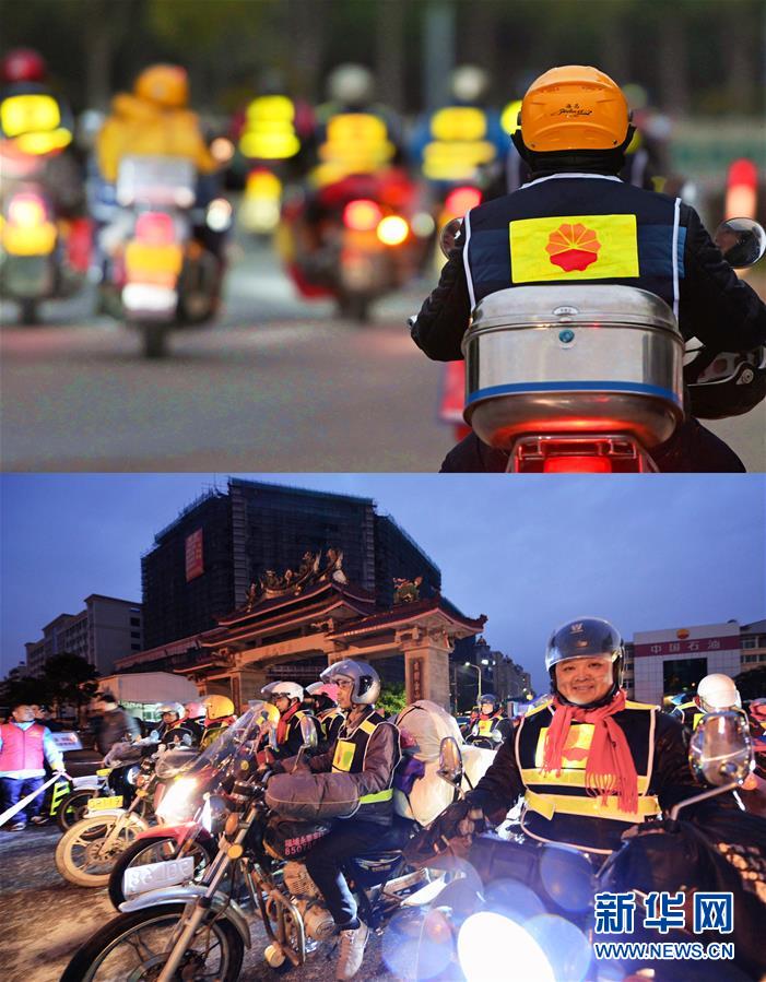 拼版照片:上圖是外來務工人員從福建騎摩托車出發(fā),踏上回家之旅(1月15日攝);下圖是江西、安徽和重慶籍外來務工人員及摩托車組成的返鄉(xiāng)“鐵騎大軍”從福建踏上返鄉(xiāng)行程(2016年1月30日攝)。 新華社記者 魏培全 攝
