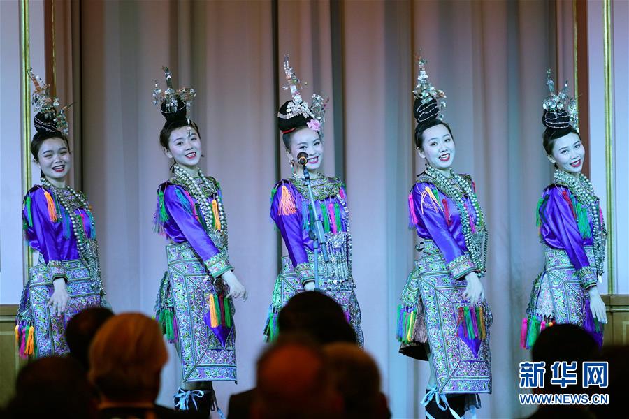 1月15日,在德國柏林,貴州省歌舞劇院藝術團的演員在晚會上表演。 15日晚,2020年“歡樂春節(jié)”新春文藝晚會在德國柏林的紅色市政廳上演,中德兩國各界代表觀看演出,共慶中國農(nóng)歷新年。 新華社記者 王勍 攝
