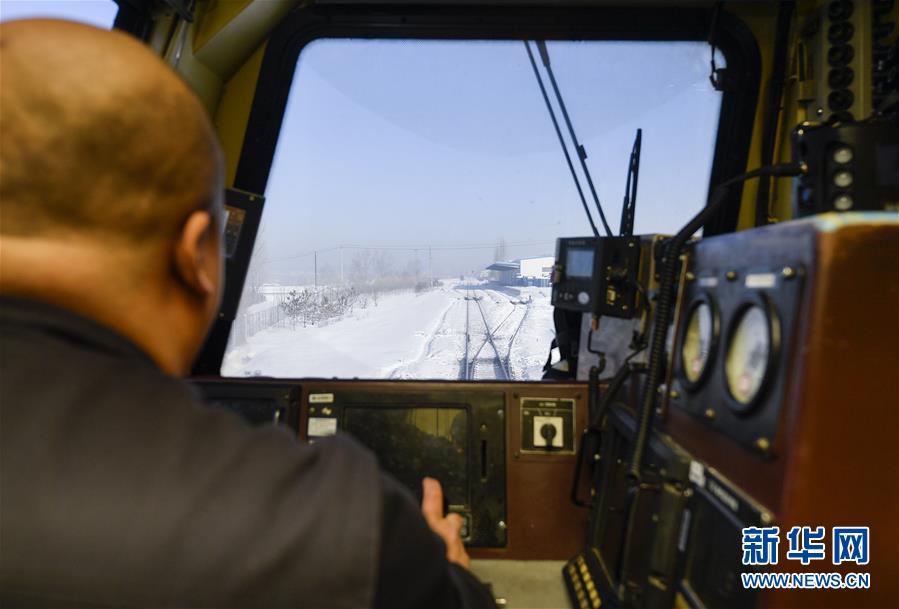 林海間的“送水小火車”機(jī)車司機(jī)杜洪峰駕駛火車行駛在線路上(1月17日攝)。新華社記者許暢攝