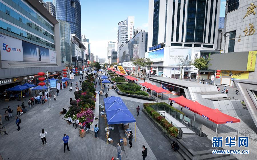 2月24日,在深圳華強(qiáng)北的步行街上,商戶、客戶和物流人員在室外忙碌。 新華社記者 毛思倩 攝
