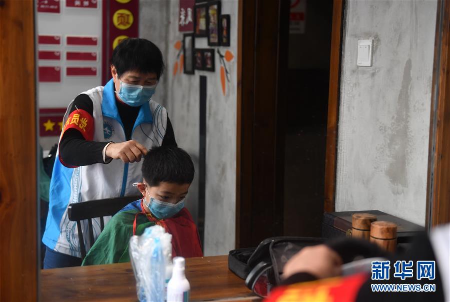 2月24日,鄒勤敏在南昌市青山湖區(qū)商苑社區(qū)服務中心為一名小朋友理發(fā)。新華社記者 胡晨歡 攝