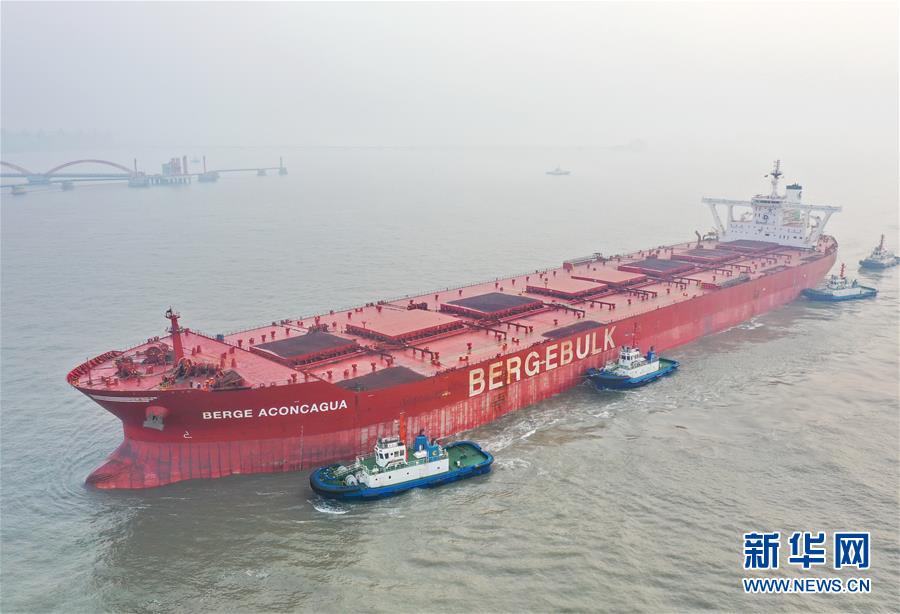 2月24日,一艘40萬噸級輪船在拖輪的協(xié)助下向曹妃甸港區(qū)礦石碼頭靠泊(無人機照片)。 連日來,河北省唐山港曹妃甸港區(qū)為有效防控疫情、保證安全生產,采取對進入港區(qū)人員檢測體溫、對車輛進行消殺等嚴格措施,為海、陸交通暢通和物資運輸提供保障。 新華社記者 楊世堯 攝