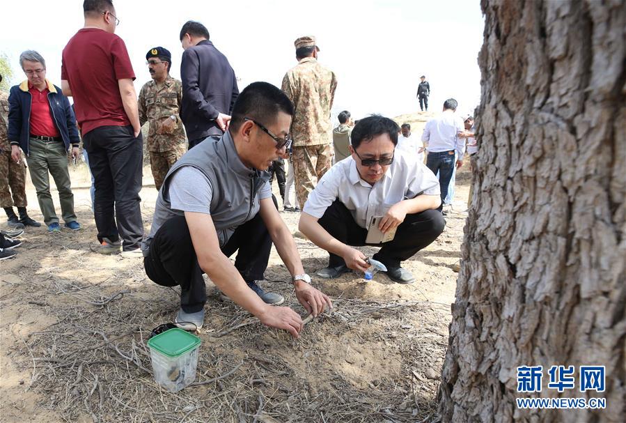 2月26日,在巴基斯坦信德省,中國(guó)蝗災(zāi)防治工作組專(zhuān)家采集蝗蟲(chóng)蟲(chóng)卵。新華社記者劉天攝