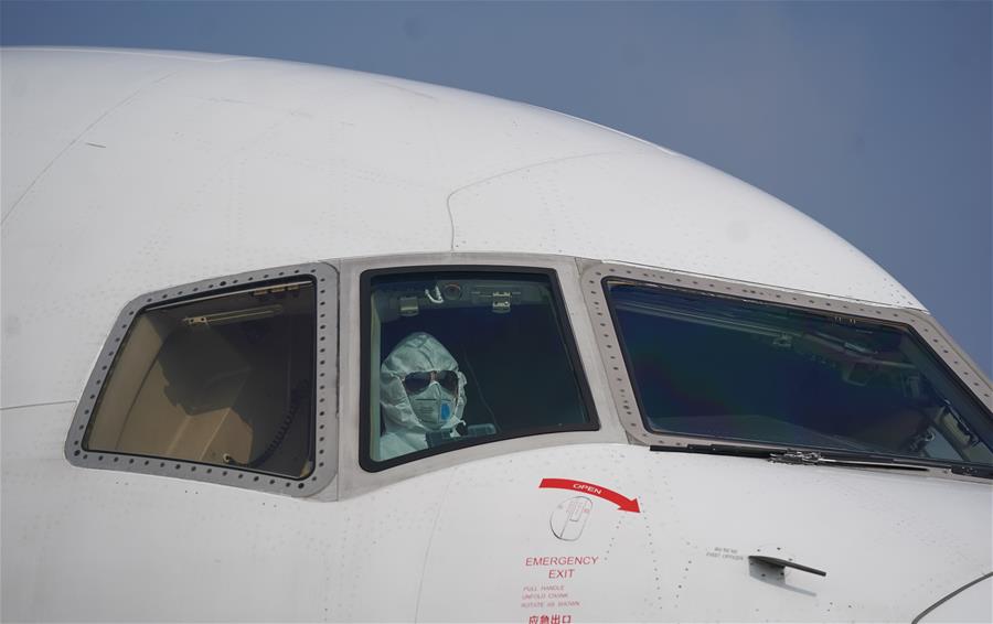 1月28日,飛行員駕駛滿載援助物資的飛機(jī)抵達(dá)武漢天河機(jī)場。新華社記者 程敏 攝