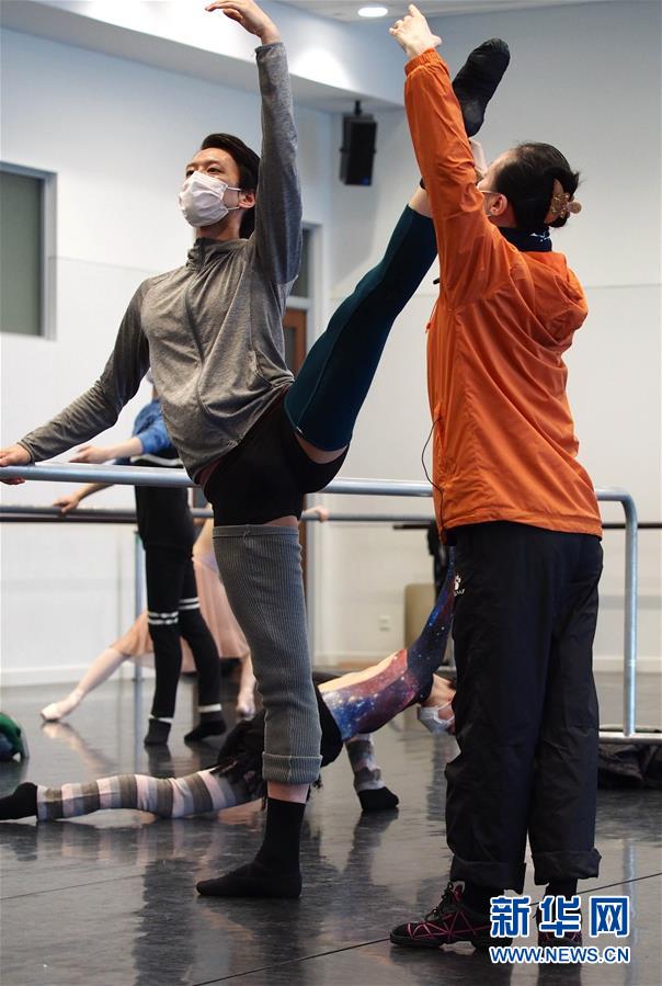 2月29日,在通過(guò)網(wǎng)絡(luò)直播的“公益公開(kāi)課”上,上海芭蕾舞團(tuán)團(tuán)長(zhǎng)辛麗麗(右)在指導(dǎo)首席演員吳虎生。新華社記者任瓏攝