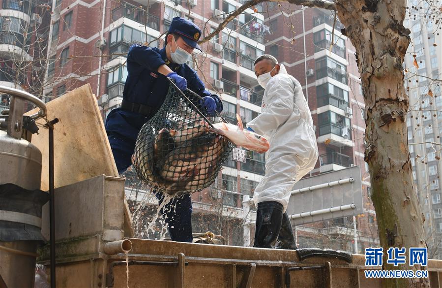 3月13日,一批運(yùn)到武漢市硚口區(qū)華生漢口城市廣場(chǎng)社區(qū)的活魚(yú)正在卸貨。當(dāng)日,首批100噸調(diào)配自湖北省咸寧市的活魚(yú)運(yùn)抵武漢市硚口區(qū)11個(gè)街道下轄社區(qū)。咸寧是魚(yú)米之鄉(xiāng),水產(chǎn)資源豐富。此次戰(zhàn)疫咸寧得到了全國(guó)人民的支持,疫情得到良好控制。咸寧送魚(yú),希望傳遞愛(ài)心,支持武漢早日戰(zhàn)勝疫情。新華社記者程敏攝