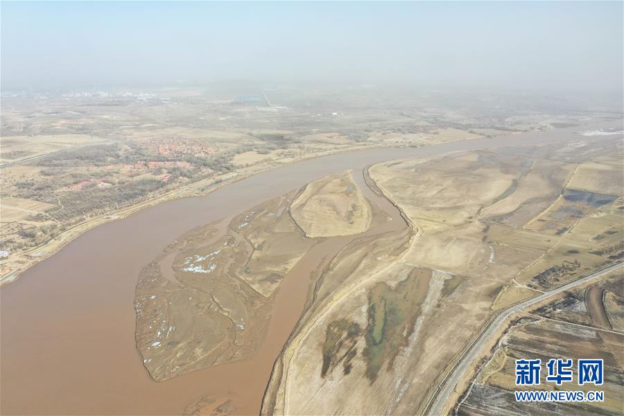這是3月18日拍攝的黃河內蒙古托克托縣段(無人機照片)。 當日,黃河內蒙古封凍河段全線開通,凌汛洪水安全進入萬家寨水庫,這標志著黃河2019-2020年度凌汛期結束。據(jù)了解,本年度黃河凌汛期歷時共計121天,全河封凍總長度699.5千米,全河未發(fā)生凌汛災害。 新華社記者 劉磊 攝