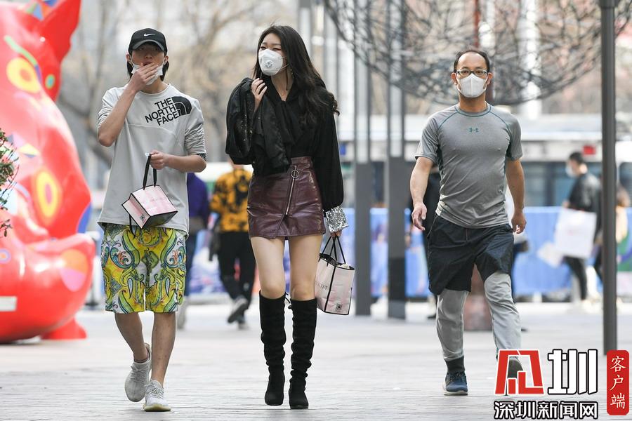 2020年3月18日,北京,據(jù)北京市氣象局發(fā)布,18日北京最高氣溫23攝氏度。在朝陽(yáng)區(qū)三里屯,不少潮人已迫不及待換上了短裙短褲出街,享受難得的春光。